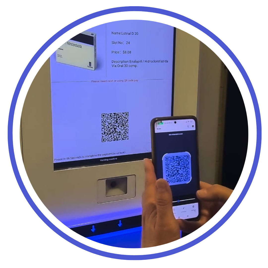 Expende productos de venta libre de medicamentos, ideal para farmacias. Pantalla: Táctil de 22″ para una experiencia de compra rápida y segura, sin intervención humana. Conectividad: Sistema con conexión Wi-Fi que permitemonitorear el stock en tiempo real. Capacidad: 6 estantes ajustables por lado (12 en total). Cada estante tiene 11 slots. Total: 132 slots configurables según necesidad. Medidas: Ancho: 2,88 m Alto: 1,98 m Profundidad: 0,95 m.